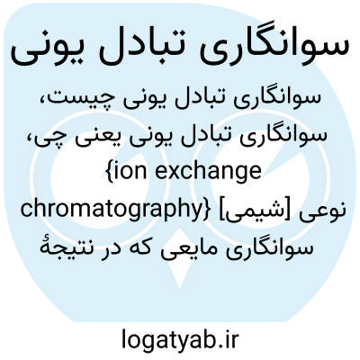 {ion exchange chromatography} [شیمی] نوعی سوانگاری مایعی که در نتیجۀ برهمکنش های یونی صورت می گیرد