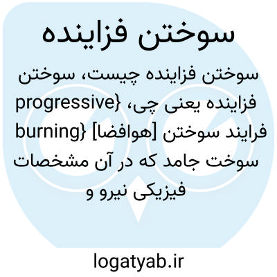 {progressive burning} [هوافضا] فرایند سوختن سوخت جامد که در آن مشخصات فیزیکی نیرو و فشار و سطح سوختن افزایش می یابد