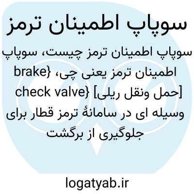 {brake check valve} [حمل ونقل ریلی] وسیله ای در سامانۀ ترمز قطار برای جلوگیری از برگشت جریان هوای فشرده