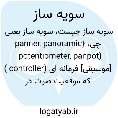 {panner, panoramic potentiometer, panpot} [موسیقی] فرمانه ای (controller ) که موقعیت صوت در یک محیط دوسویه را تنظیم می کند