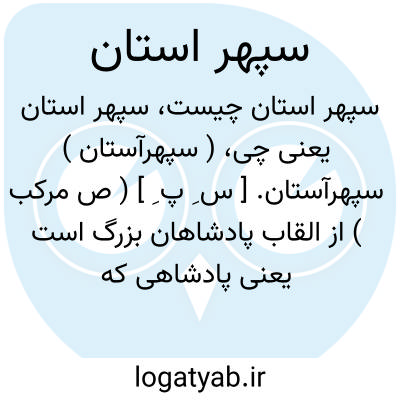 ( سپهرآستان ) سپهرآستان. [ س ِ پ ِ ] ( ص مرکب ) از القاب پادشاهان بزرگ است یعنی پادشاهی که آستان وی مانند سپهر است. ( ناظم الاطباء ). کنایه از ملوک. ( آنندراج ):