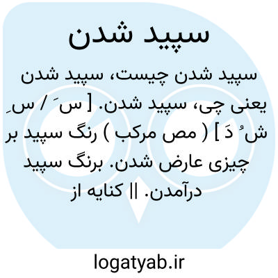 سپید شدن. [ س َ / س ِ ش ُ دَ ] ( مص مرکب ) رنگ سپید بر چیزی عارض شدن. برنگ سپید درآمدن. || کنایه از ظاهر شدن و آشکار گشتن. ( برهان ) ( غیاث ). کنایه از ظاهر و نمودار شدن. ( آنندراج ):