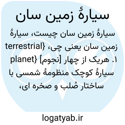{terrestrial planet} [نجوم] 1. هریک از چهار سیارۀ کوچک منظومۀ شمسی با ساختار صُلب و صخره ای، شامل زمین و عطارد و زهره و مریخ 2. هر سیارۀ کوچک و صُلب، مانند زمین، در منظومه های دیگر