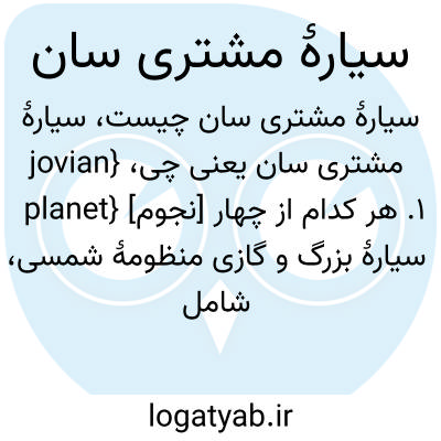 {jovian planet} [نجوم] 1. هر کدام از چهار سیارۀ بزرگ و گازی منظومۀ شمسی، شامل مشتری و زحل و اورانوس و نپتون 2. هر سیارۀ بزرگ و گازی، مانند مشتری، در منظومه های دیگر