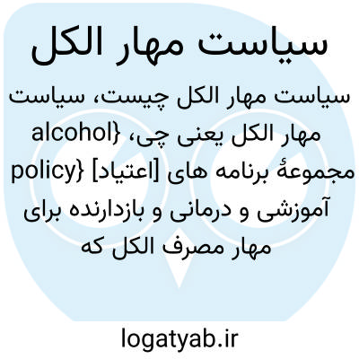 {alcohol policy} [اعتیاد] مجموعۀ برنامه های آموزشی و درمانی و بازدارنده برای مهار مصرف الکل که به طور عمده شامل پیشگیری و زیانکاهی و کاهش عرضه و تقاضاست اختـ. مهار الکل alcohol control