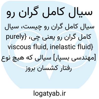 {purely viscous fluid, inelastic fluid} [مهندسی بسپار] سیالی که هیچ نوع رفتار کشسان بروز ندهد، به طوری که اگر در یک شکل ثابت نگاه داشته شود، تنش به سرعت صفر یا در تمام حجم به صورت یکنواخت توزیع شود