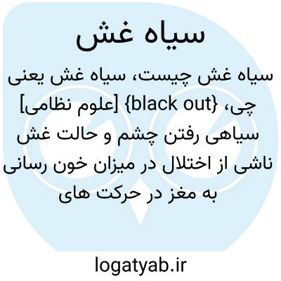 {black out} [علوم نظامی] سیاهی رفتن چشم و حالت غش ناشی از اختلال در میزان خون رسانی به مغز در حرکت های شتاب دار و روبه بالای هواپیما
