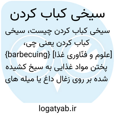 {barbecuing} [علوم و فنّاوری غذا] پختن مواد غذایی به سیخ کشیده شده بر روی زغال داغ یا میله های برقی