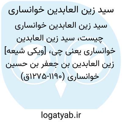 [ویکی شیعه] زین العابدین بن جعفر بن حسین خوانساری (۱۱۹۰-۱۲۷۵ق) مشهورترین فرزند میر صغیر، از فقیهان شیعه در قرن سیزدهم قمری بود. او آثاری در فقه و اصول دارد و به استنساخ کتاب های پیشینیان نیز می پرداخت. نوادگان او به چهارسوقی یا چهارسویی شهرت دارند. مشهورترین فرزند او محمدباقر صاحب روضات الجنات است و نواده او سید محمد مهدی خوانساری، مرجع تقلید جمعی از مردم اصفهان به شمار می رفت.