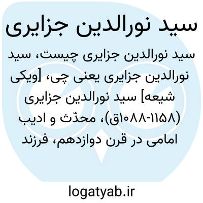 [ویکی شیعه] سید نورالدین جزایری (۱۰۸۸-۱۱۵۸ق)، محدّث و ادیب امامی در قرن دوازدهم، فرزند ارشد سیدنعمت اللّه جزایری. در درس عالمانی مانند محمد بن حسن حرّ عاملی، پدرش سید نعمت اللّه جزایری، میرمحمدباقر خاتون آبادی، و میرمحمدصالح خاتون آبادی حضور یافت و پس از وفات پدرش، عهده دار وظایف شرعی و دینی شوشتر شد. خیلی زود به مرجع و مقتدای عام و خاص تبدیل شد. نقل شده که نورالدین در کودکی موفق به دریافت اجازه روایت از شیخ حرِّ عاملی شده است. اخلاق سلطانی، انشاء الصلوات و التحیات باقتباس آیة النور یا دوازده امام، تحفة الاولیاء فی ترجمه قصص الانبیاء و المرسلین الموسوم بالنورالمبین، ترجمه حدیث وصیت هشام، حلّ بعض الاحادیث المشکلة یا حل الاخبار، از آثار وی است.