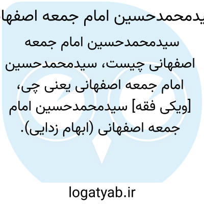 [ویکی فقه] سیدمحمدحسین امام جمعه اصفهانی (ابهام زدایی). سیدمحمدحسین امام جمعه اصفهانی، ممکن است اشاره به اشخاص و شخصیت های ذیل باشد: • سیدمحمدحسین بن محمدحسن امام جمعه خاتون آبای اصفهانی، از علماء و رؤسای اصفهان در قرن سیزدهم هجری• سیدمحمدحسین بن ابراهیم امام جمعه دلیگانی اصفهانی، از علماء و فضلای اصفهان ...