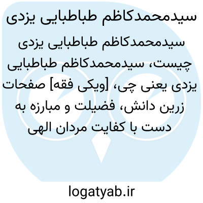 [ویکی شیعه] سید محمدکاظم طباطبائی یزدی (۱۲۴۷-۱۳۳۷ق)، از فقهای شیعه و نویسنده کتاب العروة الوثقی که پس از درگذشت سید محمدحسن شیرازی، به مرجعیت رسید. در جریان مشروطه، از مخالفان بود و میان وی و آخوند خراسانی منازعاتی در این باره در گرفت. سید یزدی در مقابل حمله ایتالیا به لیبی، انگلیس به عراق، و روسیه به ایران حکم به وجوب دفاع مسلمانان از وطن داد.