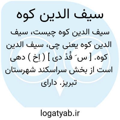 سیف الدین کوه. [ س َ فُدْ دی ] ( اِخ ) دهی است از بخش سراسکند شهرستان تبریز. دارای 444 تن سکنه. آب آن از چشمه و رود. محصول آنجا غلات و حبوبات است. ( از فرهنگ جغرافیائی ایران ج 4 ).