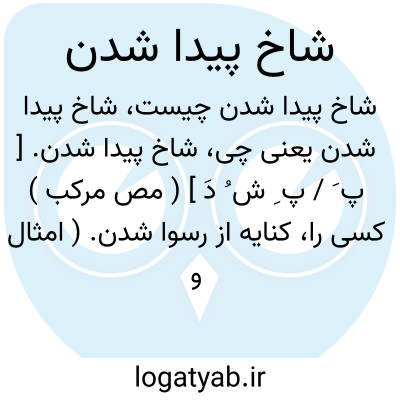 شاخ پیدا شدن. [ پ َ / پ ِ ش ُ دَ ] ( مص مرکب ) کسی را، کنایه از رسوا شدن. ( امثال و حکم دهخدا ): چون کند دعوی خیاطی کسی افکند در پیش او شه اطلسی که ببر این را بغلطاق فراخ ز امتحان پیدا شود او را دو شاخ.مولوی ( از امثال و حکم دهخدا ).