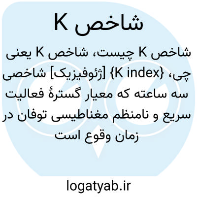 {K index} [ژئوفیزیک] شاخصی سه ساعته که معیار گسترۀ فعالیت سریع و نامنظم مغناطیسی توفان در زمان وقوع است