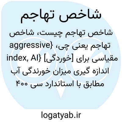 {aggressive index, AI} [خوردگی] مقیاسی برای اندازه گیری میزان خورندگی آب مطابق با استاندارد سی 400 (C-400 ) انجمن امور آب امریکا (AWWA )