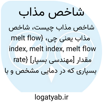 {melt flow index, melt index, melt flow rate} [مهندسی بسپار] مقدار بسپاری که در دمایی مشخص و با پیستونی تحت نیرویی معین از میان یک دای (die ) استوانه ای معیار در مدت زمانی معلوم به بیرون رانده می شود اختـ. شام MFI