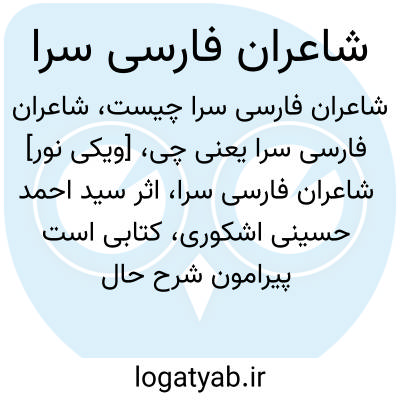 [ویکی نور] شاعران فارسی سرا، اثر سید احمد حسینی اشکوری، کتابی است پیرامون شرح حال شاعران فارسی سرا که به زبان فارسی و مقدمه آن در سال 1384ش، نوشته شده است.