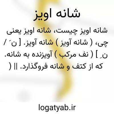 ( شانه آویز ) شانه آویز. [ ن َ / ن ِ ] ( نف مرکب ) آویزنده به شانه. که از کتف و شانه فروگذارد. || ( ن مف مرکب ) آویخته به شانه. بکتف و منکب فروآویخته. || ( حامص مرکب ) آویختن آدمی را بوضعی که دستش بر شانه بندند. ( بهار عجم ) ( ارمغان آصفی ) ( آنندراج ). نوعی از تعذیب که آدمی را شانه به رسن بربسته می آویزند. ( غیاث اللغات ):