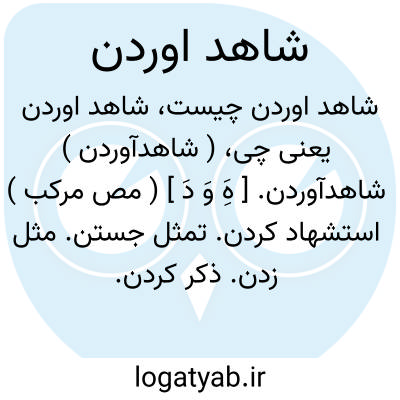 ( شاهدآوردن ) شاهدآوردن. [ هَِ وَ دَ ] ( مص مرکب ) استشهاد کردن. تمثل جستن. مثل زدن. ذکر کردن.