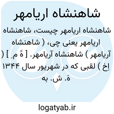 ( شاهنشاه آریامهر ) شاهنشاه آریامهر. [ هََ م ِ ] ( اِخ ) لقبی که در شهریور سال 1344 هَ. ش. به مناسبت آغاز بیست و پنجمین سال سلطنت از طرف مجلسین شورای ملی و سنا به محمدرضا شاه پهلوی داده شد.