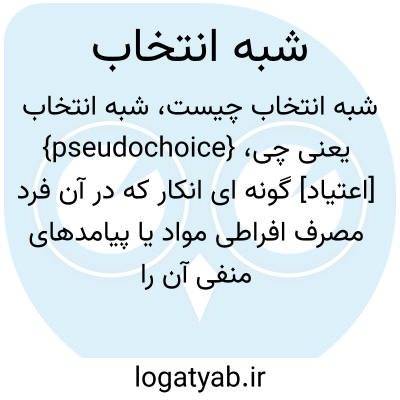 {pseudochoice} [اعتیاد] گونه ای انکار که در آن فرد مصرف افراطی مواد یا پیامدهای منفی آن را انتخاب آگاهانۀ خود می داند، نه عدم تسلط بر رفتار خود