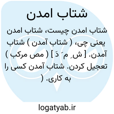 ( شتاب آمدن ) شتاب آمدن. [ ش ِ م َ دَ ] ( مص مرکب ) تعجیل کردن. شتاب آمدن کسی را به کاری. ( یادداشت مؤلف ):
