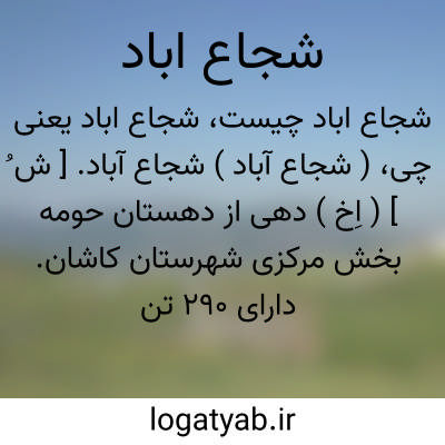 ( شجاع آباد ) شجاع آباد. [ ش ُ ] ( اِخ ) دهی از دهستان حومه بخش مرکزی شهرستان کاشان. دارای 290 تن سکنه، آب آن از قنات و محصول آن غلات، تنباکو و پنبه است. ( از فرهنگ جغرافیائی ایران ج 3 ).