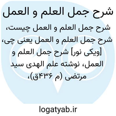[ویکی نور] شرح جمل العلم و العمل، نوشته علم الهدی سید مرتضی (م 436ق)، شرحی بر بخش «اعتقادات» کتاب خودش «جمل العلم و العمل» است. سید کتابش را در پاسخ به درخواست یکی از شاگردانش شرح کرده و او نوشته استیعقوب جعفری مراغی کتاب را تصحیح نموده و بر آن پاورقی زده است.