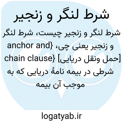 {anchor and chain clause} [حمل ونقل دریایی] شرطی در بیمه نامۀ دریایی که به موجب آن بیمه گر قید می کند از پرداخت هزینۀ بازیافت لنگر ازدست رفتۀ کشتی که هنوز شناور است معاف باشد