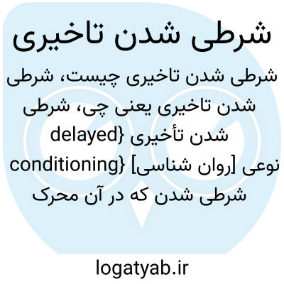 شرطی شدن تأخیری {delayed conditioning} [روان شناسی] نوعی شرطی شدن که در آن محرک غیرشرطی با فاصلۀ زمانی چند ثانیه پس از محرک شرطی ارائه می شود