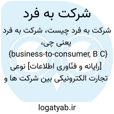 {business-to-consumer, B C} [رایانه و فنّاوری اطلاعات] نوعی تجارت الکترونیکی بین شرکت ها و افراد که در آن خریدوفروش کالا یا خدمات ازطریق وب صورت می گیرد