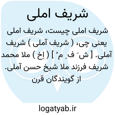 ( شریف آملی ) شریف آملی. [ ش َ ف ِ م ُ ] ( اِخ ) ملا محمد شریف فرزند ملا شیخ حسن آملی. از گویندگان قرن یازدهم هجری قمری بود. وی به هندوستان رفت و به خدمت ابراهیم خان بن علی مردانخان رسید و در موهان از توابع لکهنو درگذشت. بیت زیر از اوست: