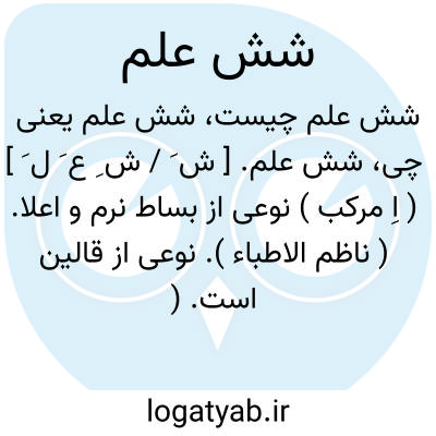 شش علم. [ ش َ / ش ِ ع َ ل َ ] ( اِ مرکب ) نوعی از بساط نرم و اعلا. ( ناظم الاطباء ). نوعی از قالین است. ( آنندراج ).