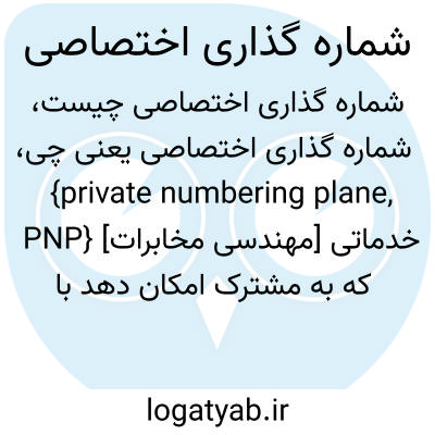 {private numbering plane, PNP} [مهندسی مخابرات] خدماتی که به مشترک امکان دهد با استفاده از شماره های خارج از طرح شماره گذاری عمومی در داخل یک یا چند شبکه ارتباط برقرار کند