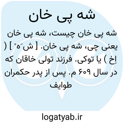 شه پی خان. [ ش َه ْ ] ( اِخ ) یا توکی. فرزند تولی خاقان که در سال 609 م. پس از پدر حکمران طوایف ترکان جنوبی گردید. وی در 615 م. هنگامی که امپراطور چین مشغول بازدید ولایات جنوبی قلمرو خود بود در صدد برآمد که با صدهزار سپاهیان امپراطور را به غفلت گیرد، اما با حیله ای که همسر شه پی خان دیده بود امپراطور چین رهائی یافت. ( از شرح احوال رودکی ص 187، 188 ).