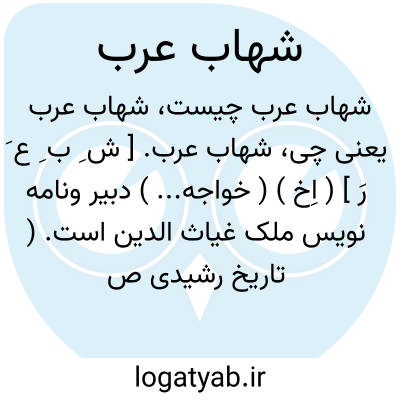شهاب عرب. [ ش ِ ب ِ ع َ رَ ] ( اِخ ) ( خواجه... ) دبیر ونامه نویس ملک غیاث الدین است. ( تاریخ رشیدی ص 93 ).