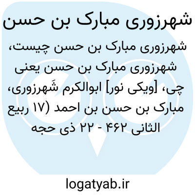 [ویکی نور] ابوالکرم شَهرزوری، مبارک بن حسن بن احمد (17 ربیع الثانی 462 - 22 ذی حجه 550ق)، مقری و محدث شهرزوری ساکن بغداد بوده است.