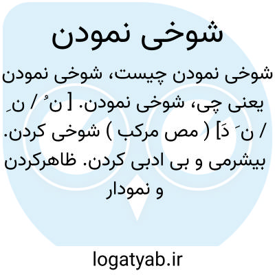 شوخی نمودن. [ ن ُ / ن ِ / ن َ دَ] ( مص مرکب ) شوخی کردن. بیشرمی و بی ادبی کردن. ظاهرکردن و نمودار ساختن آثار و علائم شوخی: