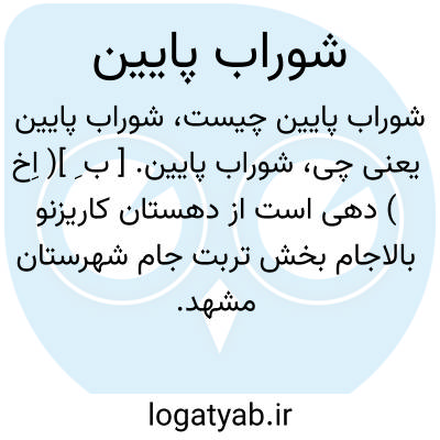 شوراب پایین. [ ب ِ ] ( اِخ ) دهی است از دهستان قلعه حمام بخش جنت آباد شهرستان مشهد. آب از چشمه. محصول آن غلات، پنبه. ( از فرهنگ جغرافیائی ایران ج 9 ).