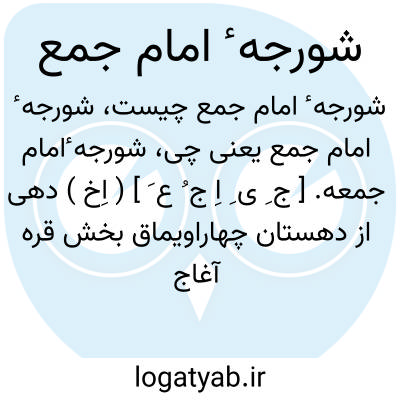 شورجه ٔامام جمعه. [ ج ِ ی ِ اِ ج ُ ع َ ] ( اِخ ) دهی از دهستان چهاراویماق بخش قره آغاج شهرستان مراغه است و 128 تن سکنه دارد. ( از فرهنگ جغرافیایی ایران ج 4 ).