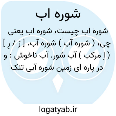 ( شوره آب ) شوره آب. [ رَ / رِ ] ( اِ مرکب ) آب شور. آب ناخوش: و در پاره ای زمین شوره آبی تنک ایستاده بود اسپش در آنجا افتاد و فروشد. ( فارسنامه ابن البلخی ص 82 ).