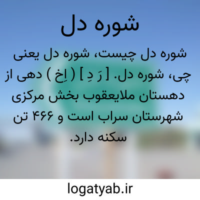 شوره دل. [ رَ دِ ] ( اِخ ) دهی از دهستان ملایعقوب بخش مرکزی شهرستان سراب است و 466 تن سکنه دارد. ( از فرهنگ جغرافیایی ایران ج 4 ).