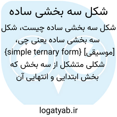 {simple ternary form} [موسیقی] شکلی متشکل از سه بخش که بخش ابتدایی و انتهایی آن یکسان یا بسیار شبیه به یکدیگرند