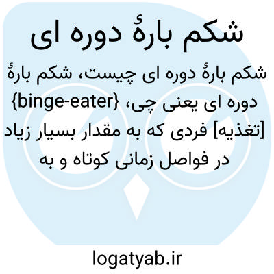 {binge-eater} [تغذیه] فردی که به مقدار بسیار زیاد در فواصل زمانی کوتاه و به صورت تکراری و مهارنشده غذا مصرف می کند