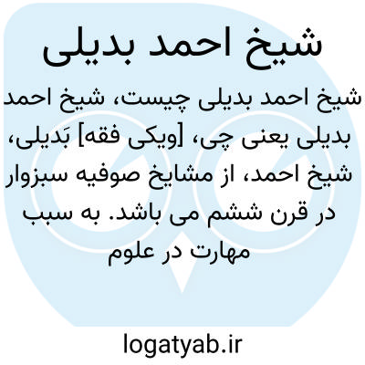 [ویکی فقه] بَدیلی، شیخ احمد، از مشایخ صوفیه سبزوار در قرن ششم می باشد.