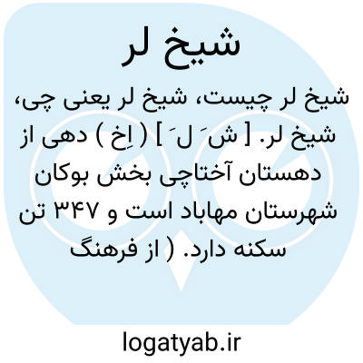 شیخ لر. [ ش َ ل َ ] ( اِخ ) دهی از دهستان آختاچی بخش بوکان شهرستان مهاباد است و 347 تن سکنه دارد. ( از فرهنگ جغرافیائی ایران ج 4 ).