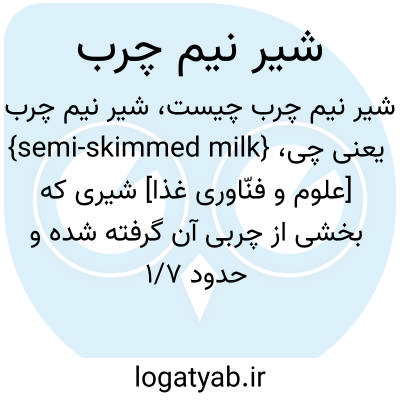{semi-skimmed milk} [علوم و فنّاوری غذا] شیری که بخشی از چربی آن گرفته شده و حدود 1/7 درصد آن باقی مانده باشد