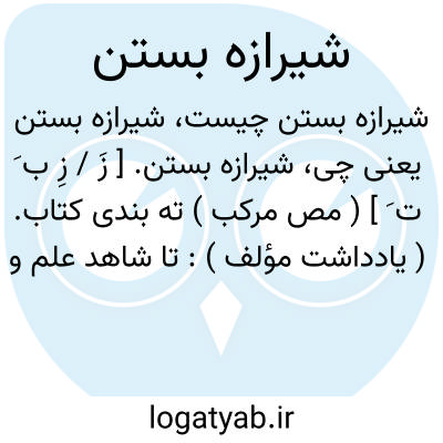 شیرازه بستن. [ زَ / زِ ب َ ت َ ] ( مص مرکب ) ته بندی کتاب. ( یادداشت مؤلف ):