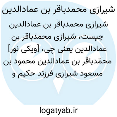 [ویکی نور] محمّدباقر بن عمادالدین محمود بن مسعود شیرازی فرزند حکیم و پزشک نامدار دوران صفوی عمادالدین محمود شیرازی است.